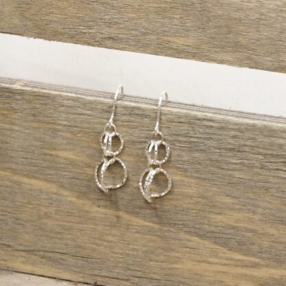 The Double Drop Silver Entwine Earrings element measures approximately 3cm long including earring hooks.