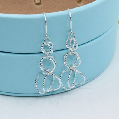 The Triple Drop Silver Entwine Earrings element measures approximately 3.5cm long excluding earring hooks.