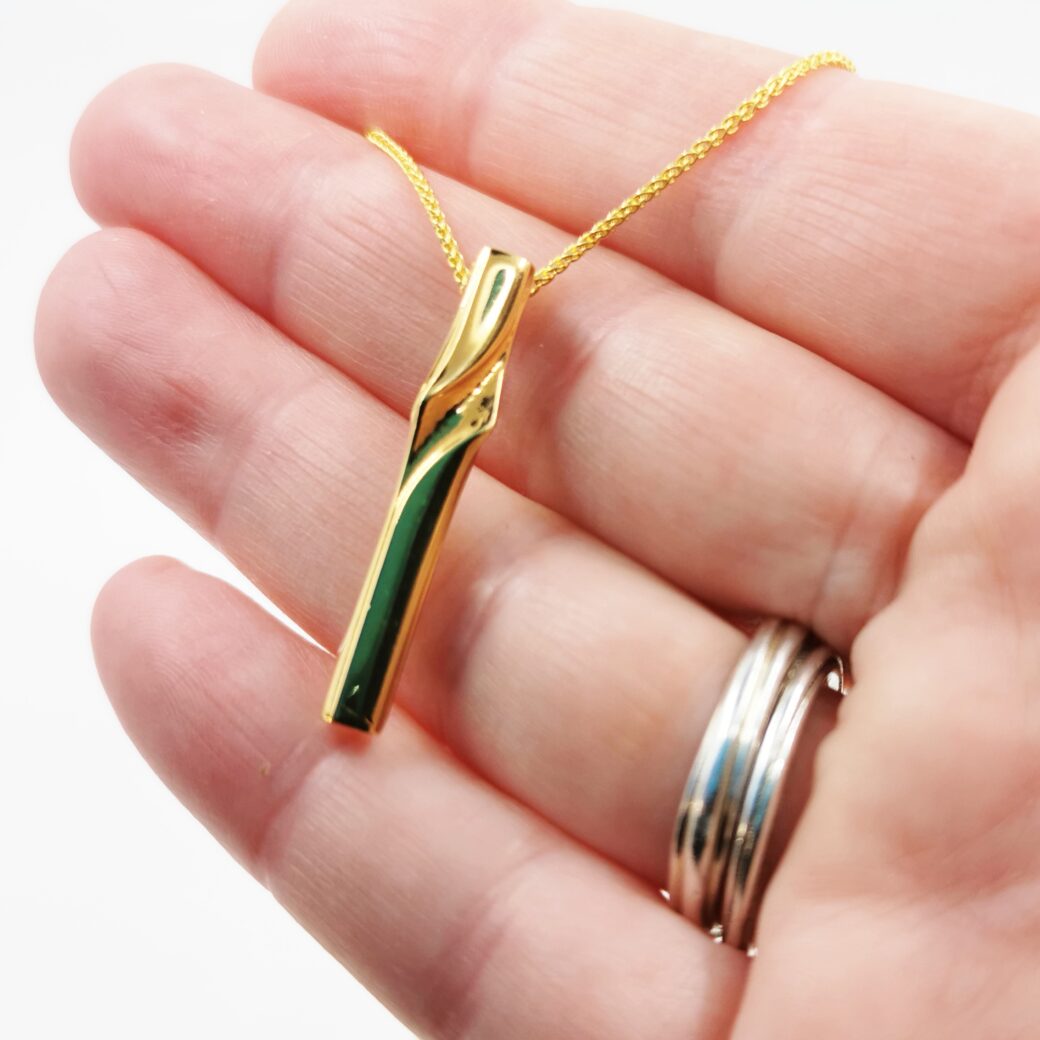 Each Twist Arch pendant is handmade in Birmingham’s historic Jewellery Quarter, hallmarked to ensure authenticity and quality. The pendant is available in several finishes, including silver with gilt detail, all gold-plated silver, or sterling silver with no gilding, allowing you to choose the style that best suits your taste.