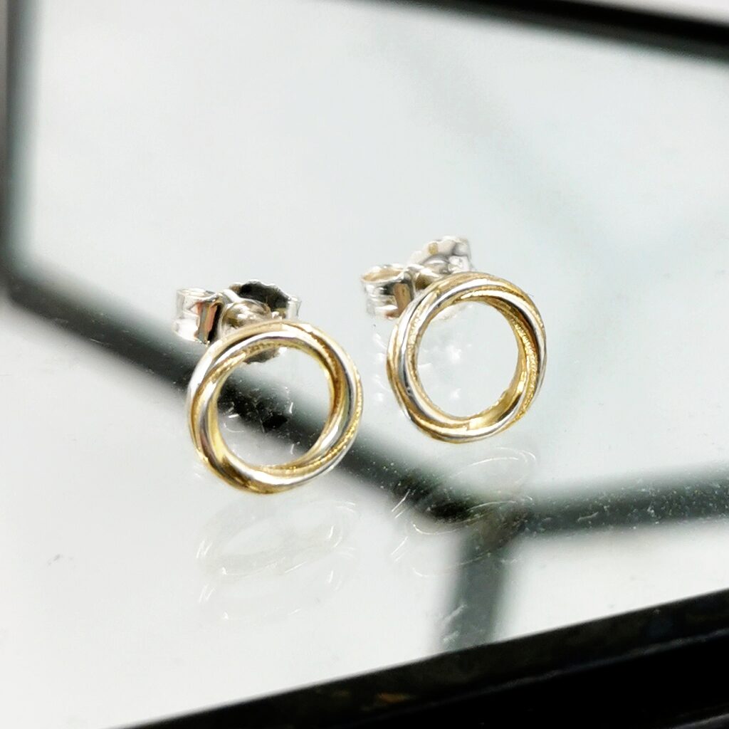 The Twist Continuum Circle Earrings in Silver and Gilt Detail – Tiny measure approx 7.5mm diameter.